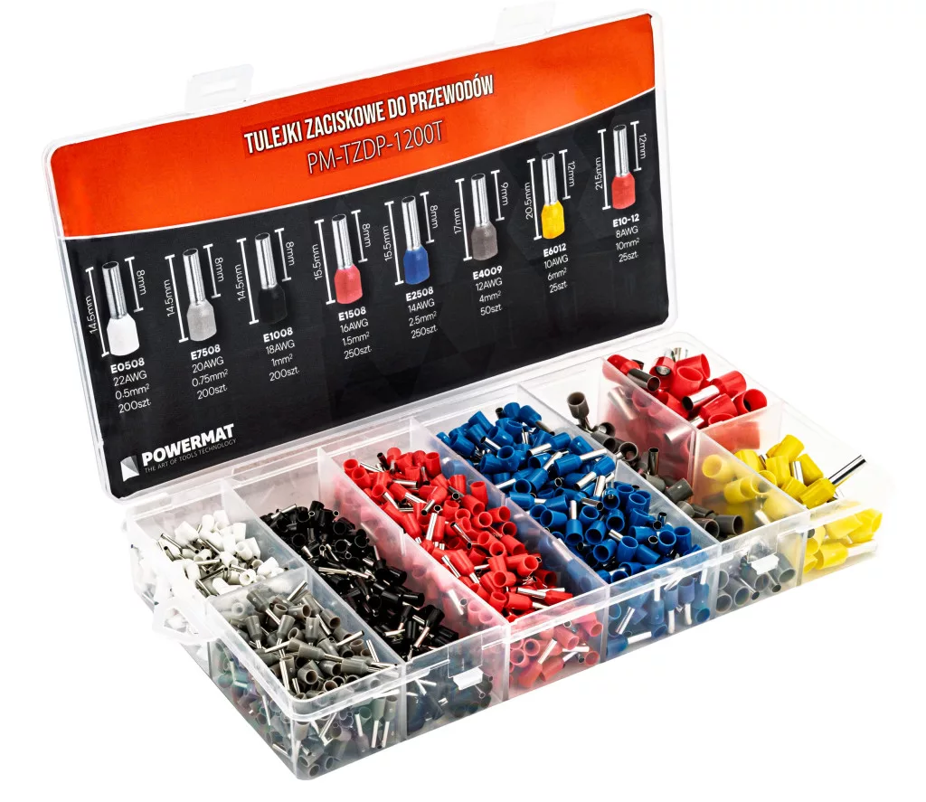 Powermat Érvéghüvely Fogó Készlet – 0,25-10 mm², 1200 db hüvely – Racsnis mechanizmus (PM-ZDTK-175T / PM1408)