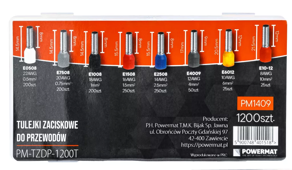 Powermat Érvéghüvely Készlet – 1200 darabos, Szigetelt, 0,5-10 mm² – Színkódolt (PM1409)