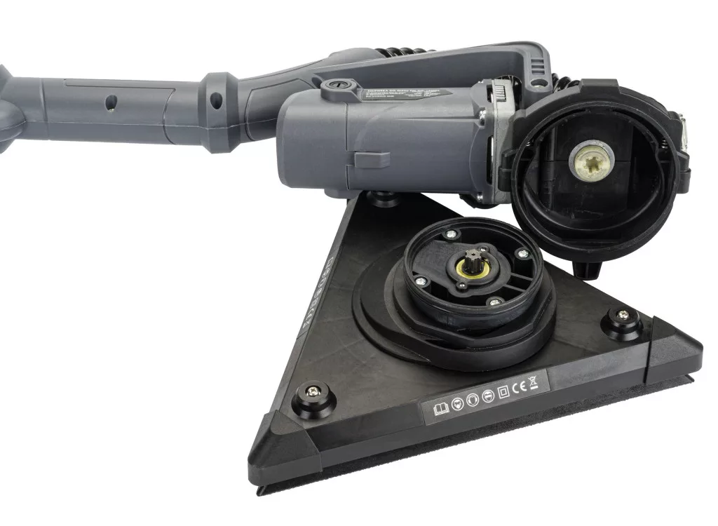 A készülék egyedülálló 2 az 1-ben kialakítással rendelkezik: a csomag tartalmaz egy hagyományos kerek csiszolófejet a nagy, egybefüggő felületekhez, valamint egy speciális delta (háromszög) fejet a sarkok és élek precíz megmunkálásához. A fejek cseréje gyors és szerszámmentes, így Önnek nem kell külön gépet tartania a különböző munkafolyamatokhoz. A dönthető fejmechanizmus 90 és 180 fok közötti mozgástartományt biztosít, így a gép tökéletesen követi a fal vagy a mennyezet síkját.