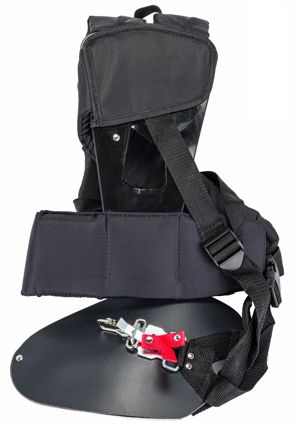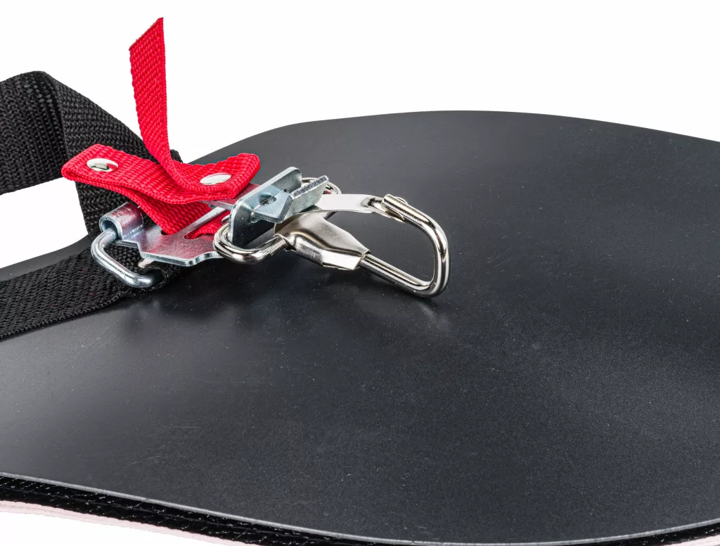 A biztonság nem ismer kompromisszumot, ezért a Powermat SDK-2 egy speciális rugós gyorsoldó rendszerrel van felszerelve. Egy esetleges vészhelyzetben a piros jelzőszalag meghúzásával a gép azonnal és könnyedén lecsatolható a testről. Emellett a beépített csípővédő lemez extra komfortot nyújt, hiszen megvédi az Ön oldalát a gép folyamatos rezgésétől és az esetleges ütődésektől a munka közben.