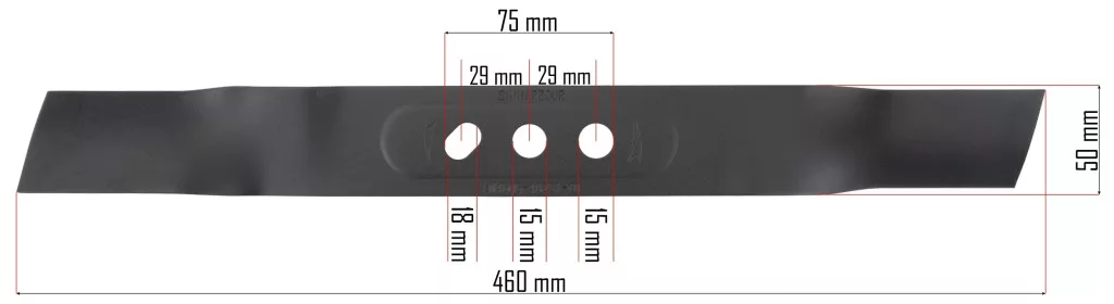 Amennyiben más márkájú fűnyíróval rendelkezik, kérjük, ellenőrizze a technikai adatoknál megadott furatméreteket és távolságokat. A 18 mm-es központi és a 15 mm-es szélső furatok számos piacon lévő modellhez teszik alkalmassá ezt a kiváló minőségű vágóeszközt, így univerzális megoldást jelenthet több 46 cm-es vágásszélességű géphez is.