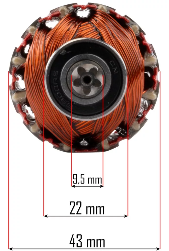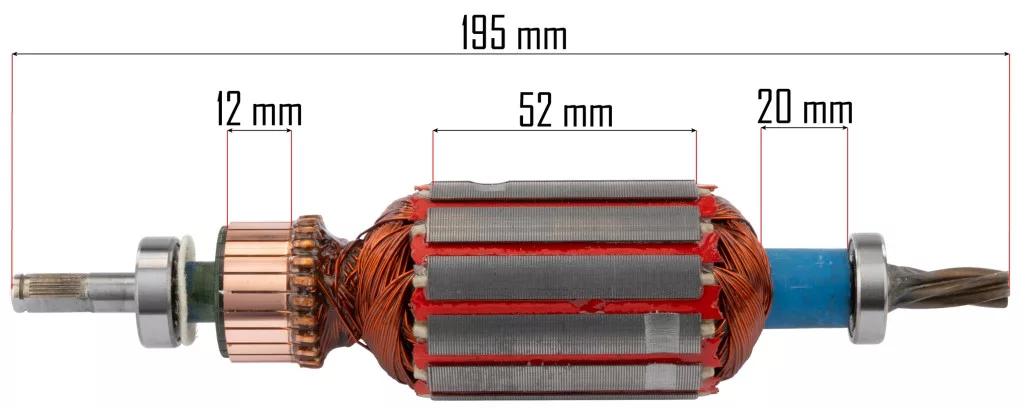 A forgórész precíziós gyártási technológiával készült, figyelembe véve a magas fordulatszámon jelentkező terhelést. A réz tekercselés optimális elektromos vezetőképességet és tartósságot biztosít, míg a két darab gyárilag szerelt csapágy garantálja a vibrációmentes, sima futást. A 195 mm-es teljes hosszúság és a 43 mm-es átmérő pontos illeszkedést tesz lehetővé a gyári házba.