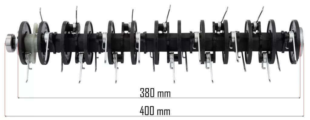 A henger 400 mm-es teljes hosszúsággal és 125 mm-es átmérővel rendelkezik, ami stabil futást és egyenletes munkavégzést biztosít. A robusztus felépítés garantálja, hogy az alkatrész még intenzív igénybevétel mellett is hosszú ideig szolgálja Önt a kerti munkák során, megőrizve vágóéleinek hatékonyságát.