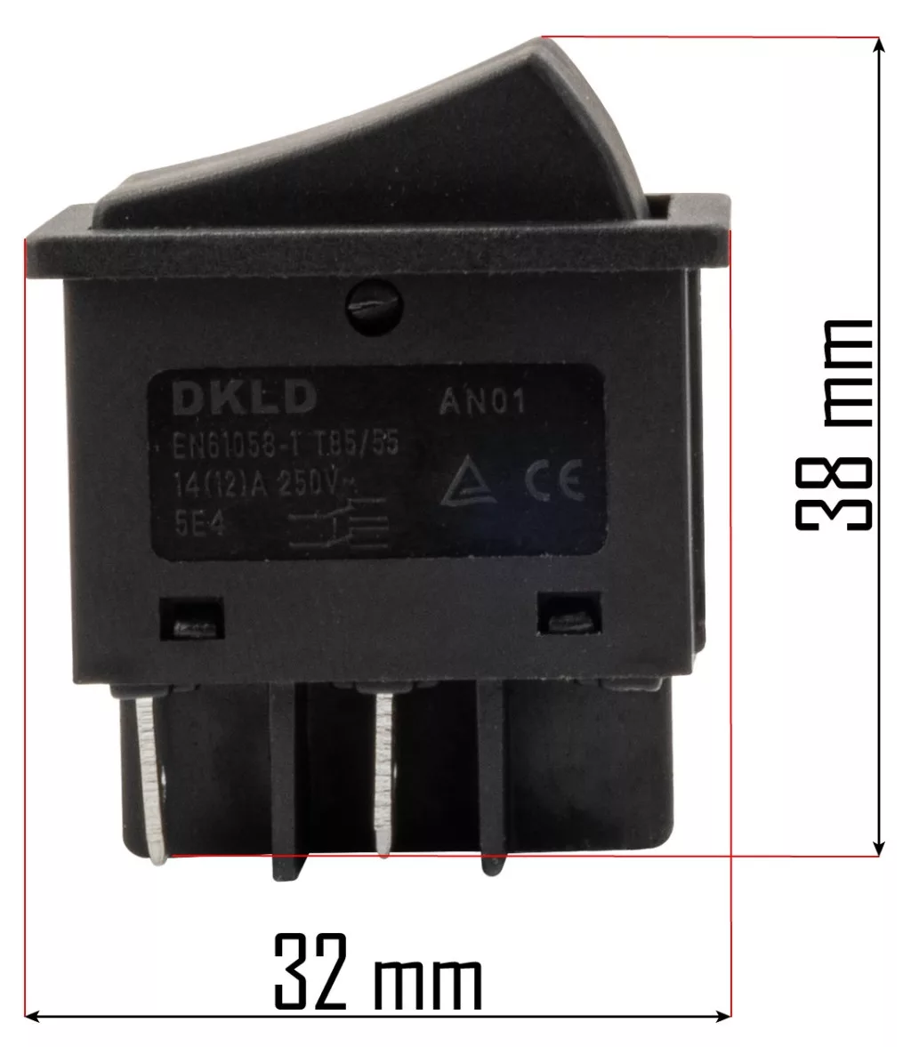 A beszerelés előtt kérjük, győződjön meg róla, hogy a gép áramtalanítva van! Ellenőrizze a régi kapcsoló méreteit és a csatlakozók számát a kompatibilitás véglegesítéséhez. A pontos illeszkedés érdekében a termék 38 mm magas, 32 mm széles és 25 mm mély házzal rendelkezik, amely a legtöbb szabványos foglalatba könnyedén bepattintható.