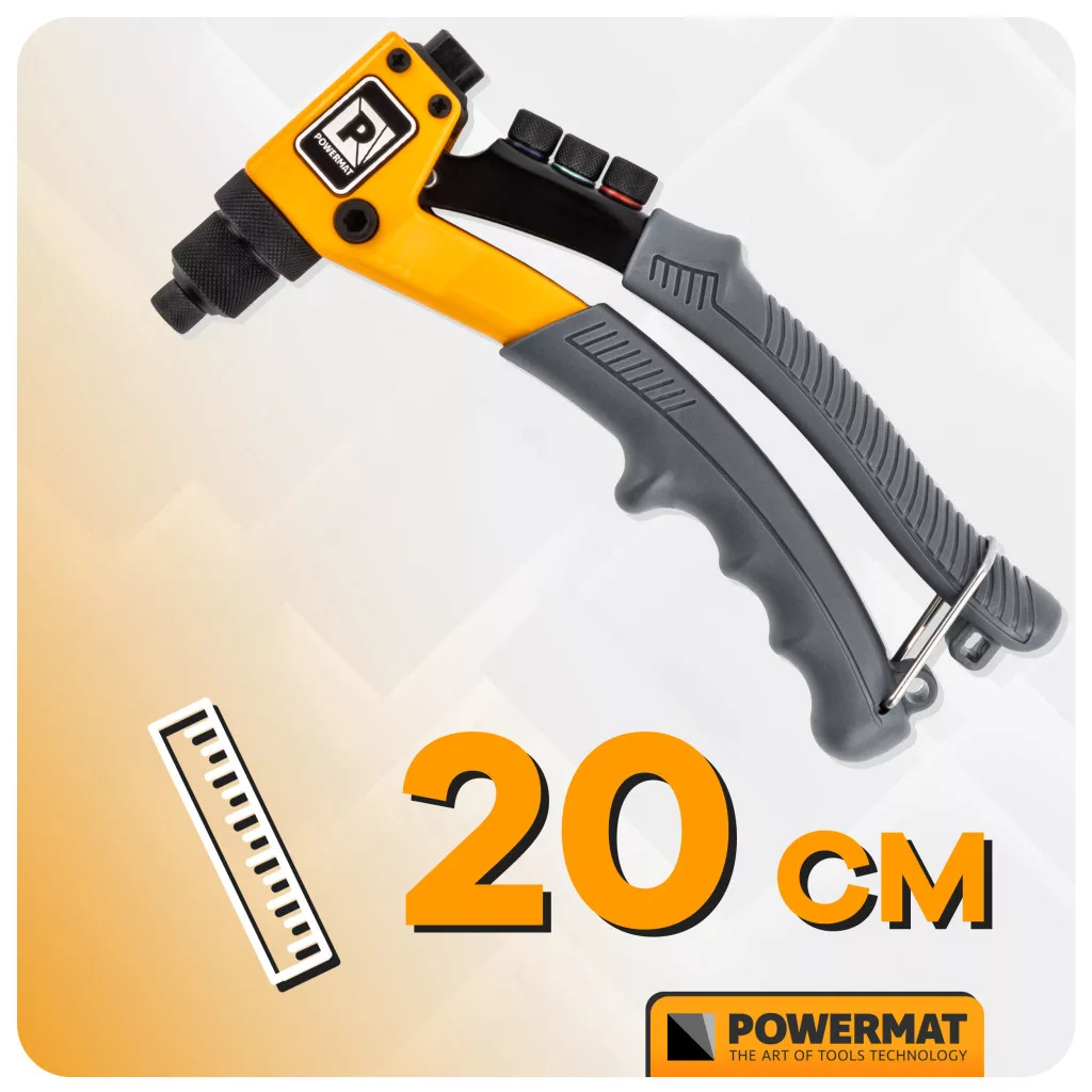 A Powermat PM-NIR-200T kézi popszegecshúzó ideális megoldást kínál minden olyan helyzetben, ahol tartós és megbízható kötésre van szükség, de a munkaterület korlátozott. Legyen szó otthoni javítási munkákról vagy kisebb szerkezetek építéséről, ez a szerszám lehetővé teszi az elemek gyors és stabil rögzítését anélkül, hogy hegesztésre vagy bonyolult menetezésre lenne szükség. A kompakt, mindössze 20 cm-es kialakításnak köszönhetően Ön könnyedén hozzáférhet a szűk profilokhoz és belső burkolatokhoz is.