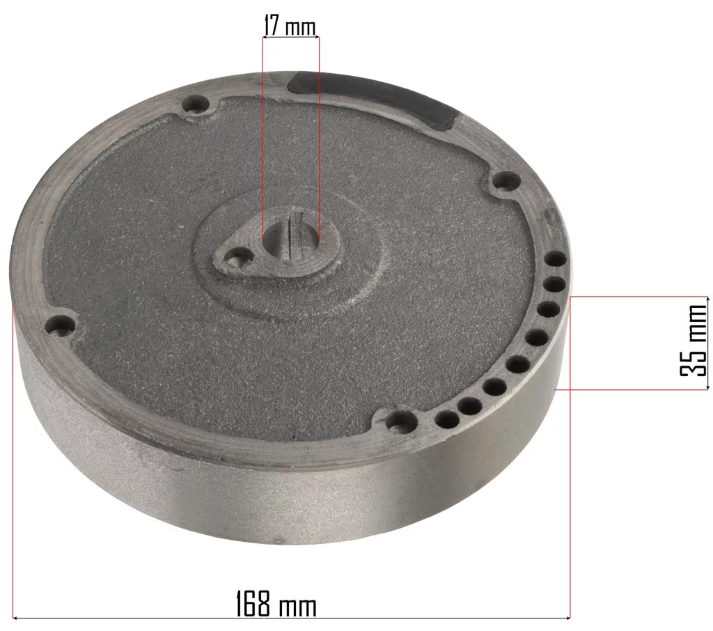 Eredeti Powermat lendkerék (magneto) benzines fűnyírókhoz, amely garantálja a stabil gyújtást és a motor optimális egyensúlyát.