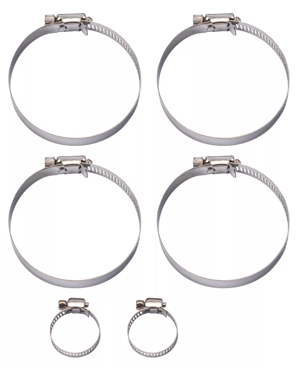 A telepítés egyszerűségét a mellékelt rögzítőbilincsek biztosítják. A csomag 4 darab nagy és 2 darab kis méretű fém bilincset tartalmaz, amelyekkel szivárgásmentesen és stabilan rögzítheti a csöveket a készülék kimeneteihez. Önnek nem kell külön kötőelemek után kutatnia, minden szükséges alkatrész egyetlen csomagban rendelkezésre áll.