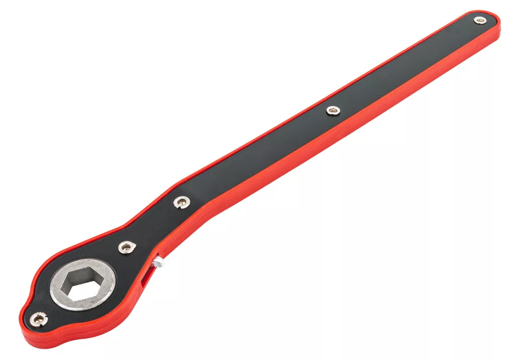 Professzionális racsnis kulcs trapézemelőkhöz, amely jelentősen megkönnyíti és felgyorsítja a gépjárművek emelését a hagyományos kurblikkal szemben.