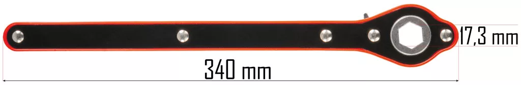 Ez a speciális szerszám 340 mm-es teljes hosszúsággal rendelkezik, ami kiváló erőátvitelt biztosít. A hosszú kar segítségével Önnek sokkal kisebb fizikai erőt kell kifejtenie az autó megemeléséhez, mint a rövid, hagyományos karok esetében. A racsnis mechanizmus lehetővé teszi a folyamatos munkavégzést anélkül, hogy a kulcsot minden fordulat után le kellene venni a csatlakozóról.