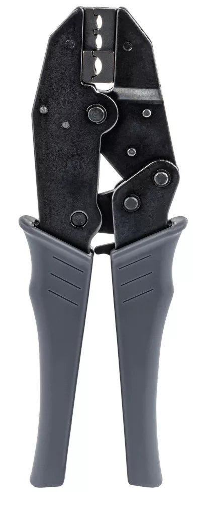 Professzionális racsnis présszerszám szigetelt kábelsaruk és csatlakozók precíz rögzítéséhez 0,5 és 6 mm² közötti tartományban.