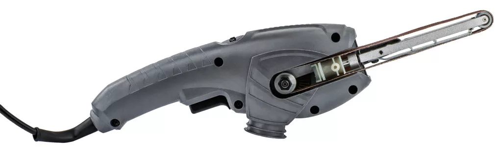Precíziós ujj-szalagcsiszoló 400W teljesítménnyel és állítható sebességgel, kifejezetten szűk rések és bonyolult idomok megmunkálásához.