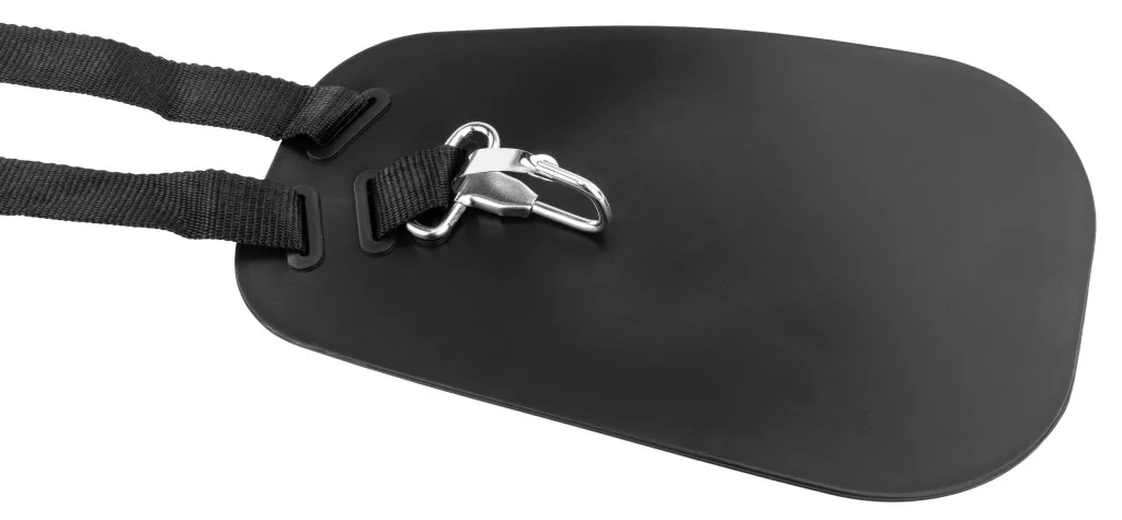 A heveder integrált csípővédő lemezzel rendelkezik, amely hatékony gátat képez a test és a gép között. Ez a merevített elem megvédi a felhasználót a motor rezgéseitől és az esetleges ütődésektől, tovább növelve a komfortérzetet. Az állítható magasságnak és pántszélességnek köszönhetően a heveder bármilyen testalkathoz tökéletesen hozzáigazítható, biztosítva a stabil és csúszásmentes illeszkedést.