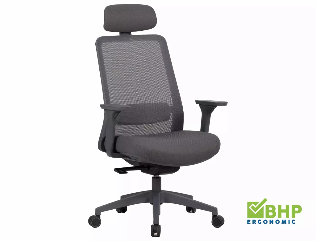Q-718H Ergonomikus Hálós Forgószék Szürke Fejtámlával