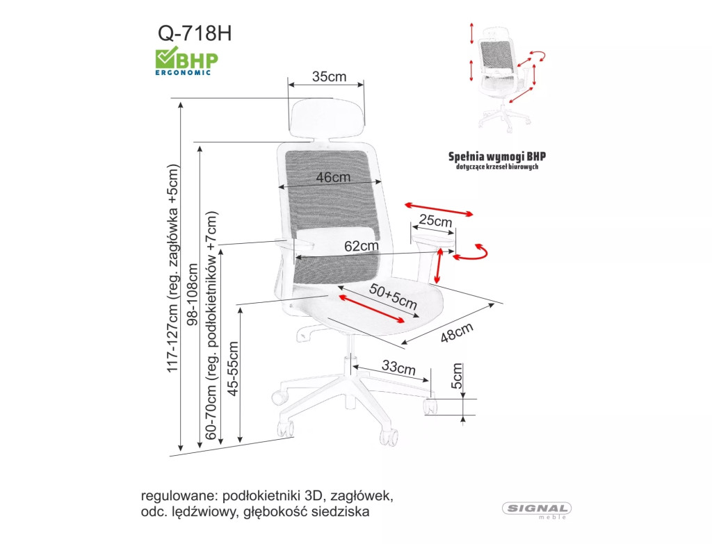 • Teljes ergonomikus kialakítás állítható deréktámasszal és fejtámlával
