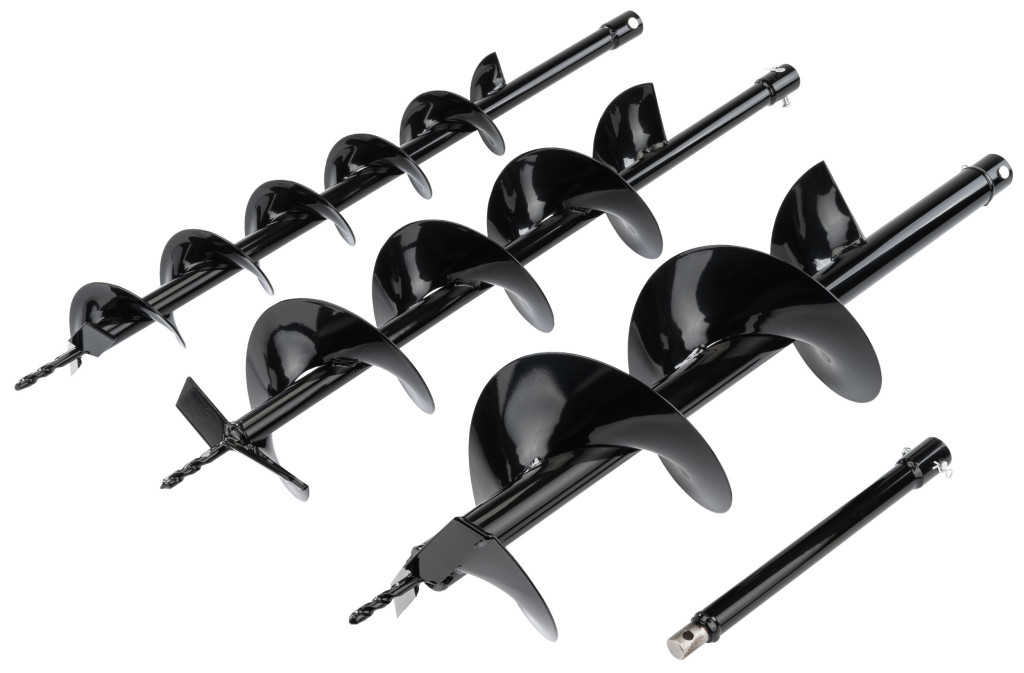 • Univerzális tartozékkészlet: a három különböző méretű (100, 150, 200 mm) edzett acél fúrószár és a toldó minden talajmunkához megoldást nyújt.