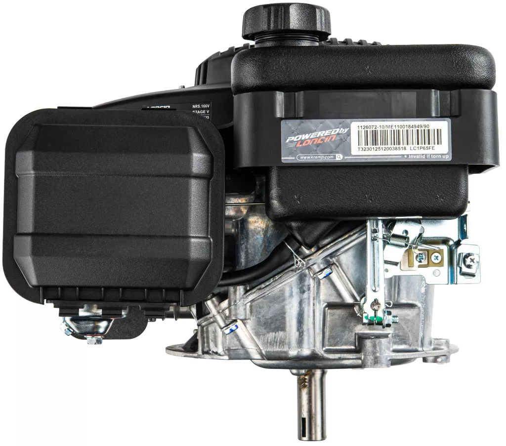 Nagy teljesítményű, 139 cm³-es Loncin benzinmotor függőleges tengellyel, amely ideális választás kapálógépekhez és fűnyírókhoz.
