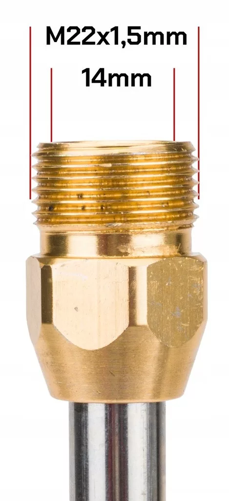 • Vásárlás előtt ellenőrizze a meglévő tömlője csatlakozójának méretét (M22x1,5 és a tüske átmérője)!