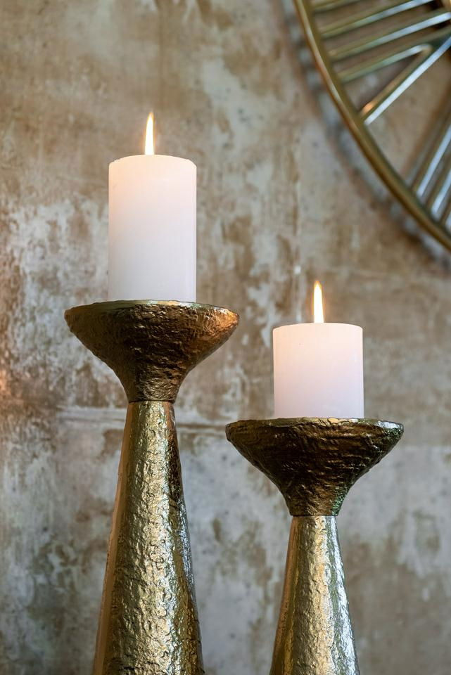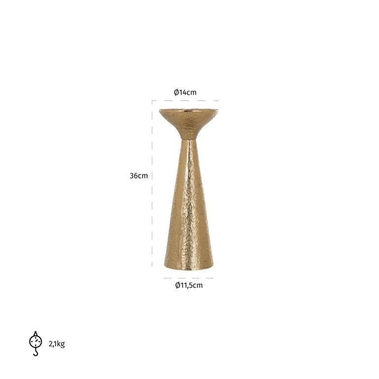 Klasszikus, időtlen formájú gyertyatartó arany színben.