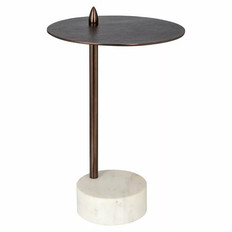A Richmond Barron kisasztal a kifinomult design és praktikum találkozása. Az alumínium asztallap és a bronz színű oszlop elegáns kontrasztot alkot a fehér márvány talppal, létrehozva egy időtlen darabot, amely bármely modern enteriőr ékessége lehet.