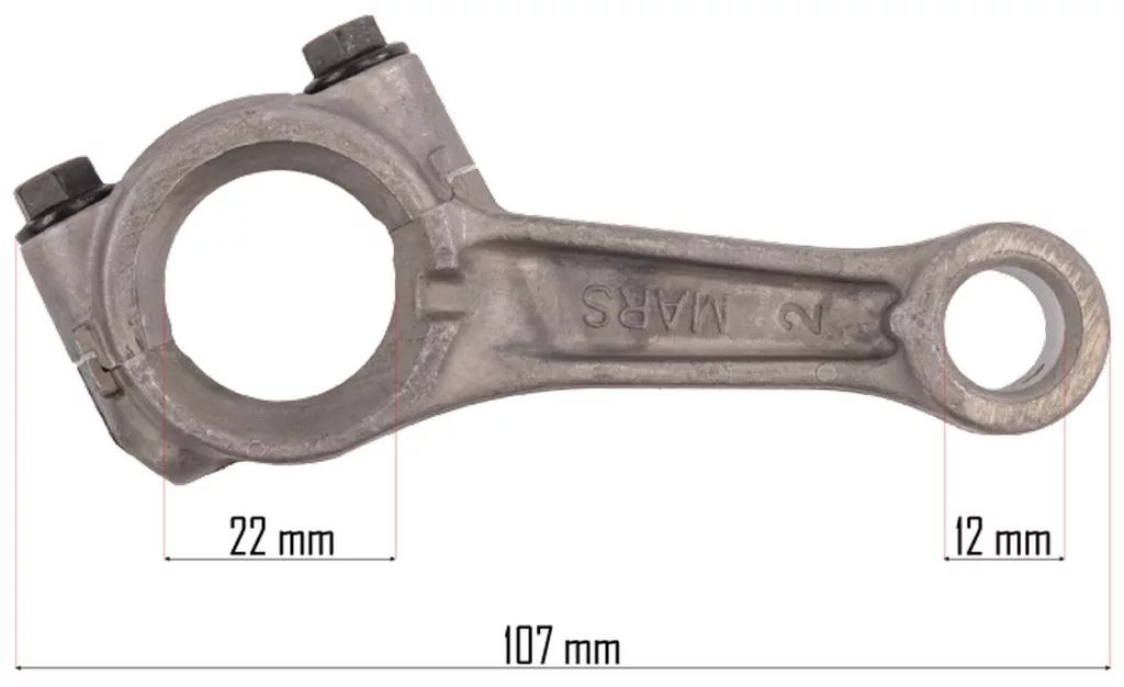 A termék kiváló minőségű, nagy szakítószilárdságú alumíniumötvözetből készül, amely ellenáll a motorban fellépő extrém hőterhelésnek és mechanikai feszültségnek. A precíziós megmunkálású furatok – 12 mm a dugattyúcsapszegnél és 22 mm a főtengelynél – garantálják a sima futást és a minimális súrlódást. A csomag tartalmazza a rögzítéshez szükséges speciális csavarokat is, így Önnek nem kell külön kötőelemek után kutatnia.