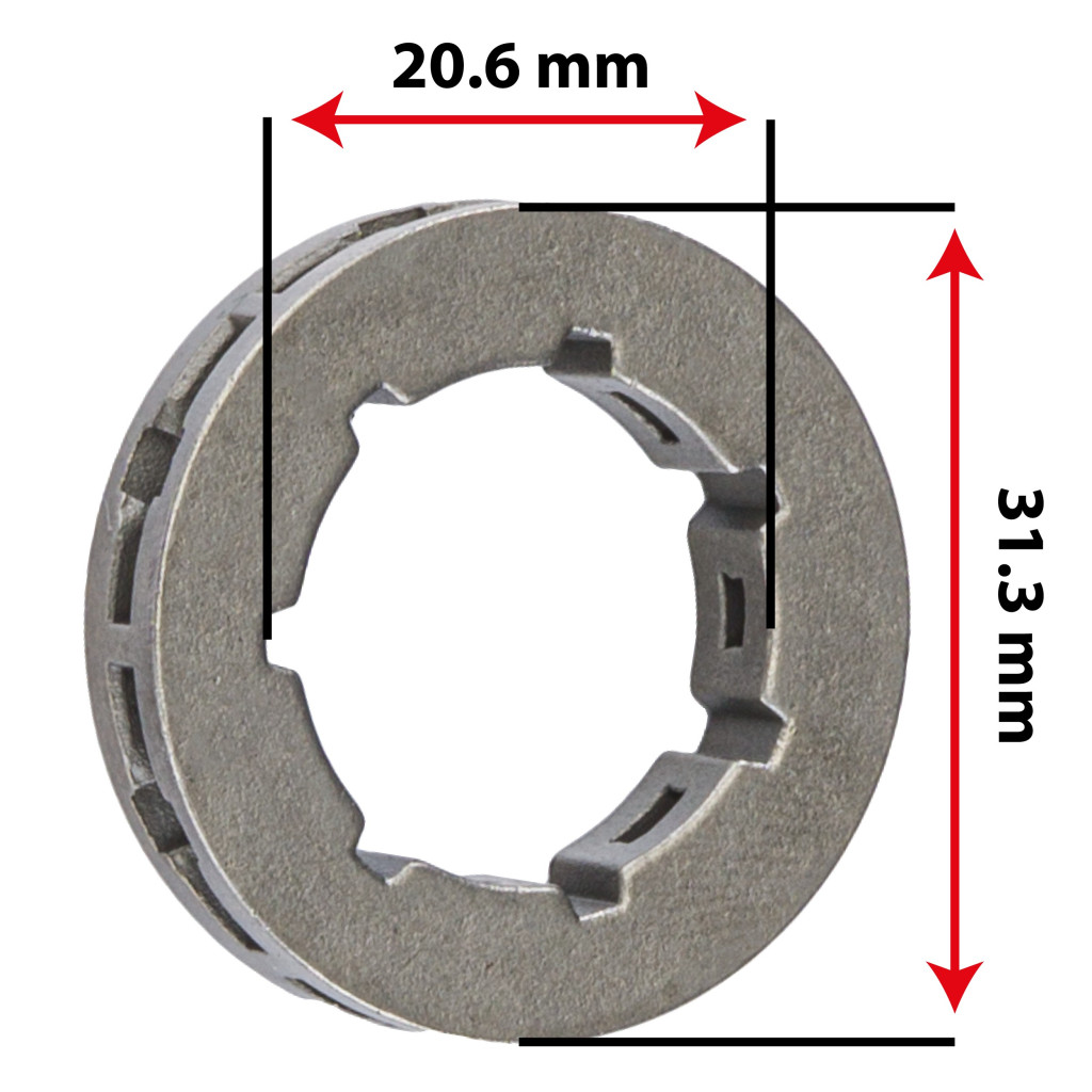 Ez a lebegő gyűrűs kialakítású alkatrész kifejezetten a .325" láncosztású rendszerekhez készült. A 7 fogas kialakítás optimális áttételt biztosít, így a motor ereje veszteség nélkül adódik át a vágóláncnak. A precíz gyártási folyamatnak köszönhetően a lánc simábban fut a vezetőlemezen, ami nemcsak a vágás minőségét javítja, hanem a lánc és a vezető élettartamát is jelentősen meghosszabbítja.