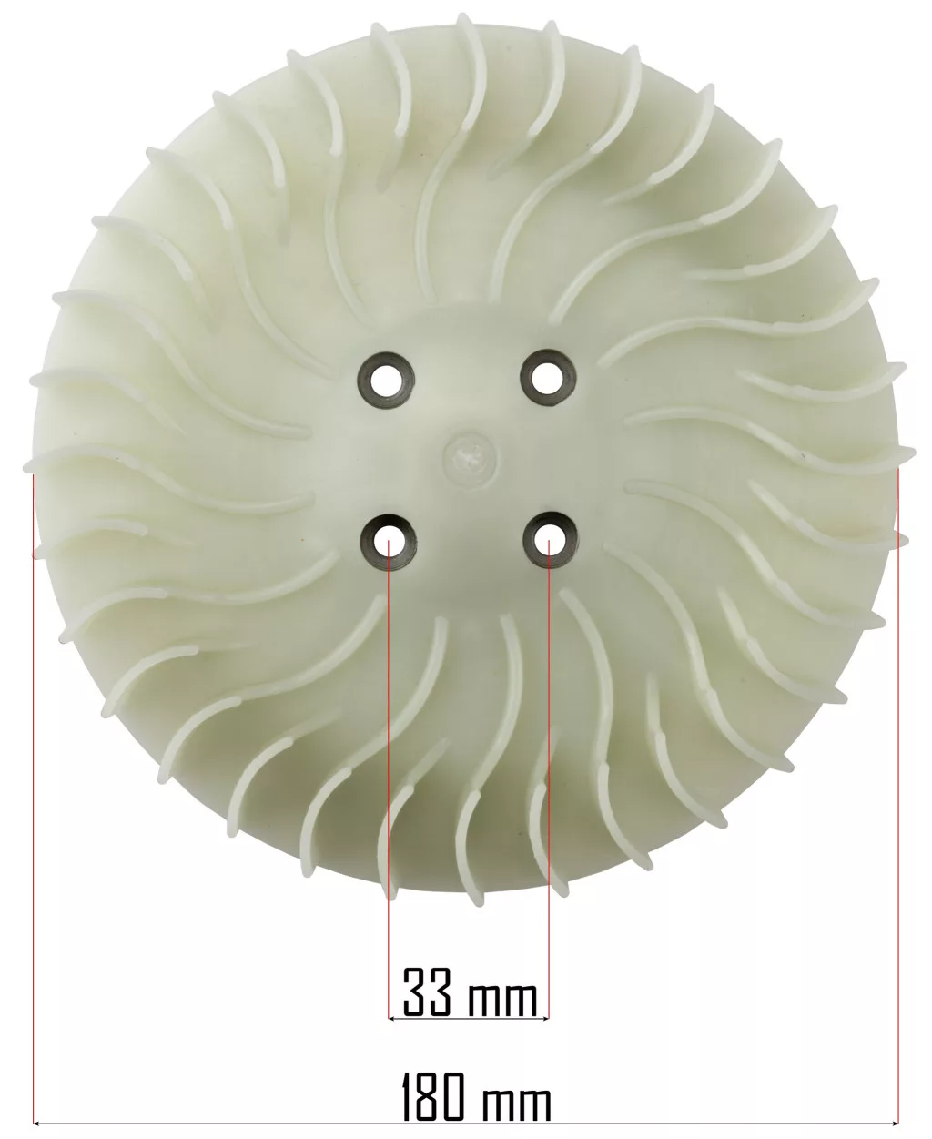 A 180 mm-es külső átmérővel rendelkező alkatrész speciális, nagy szilárdságú műanyagból készült. Ezt az anyagot úgy tervezték, hogy ellenálljon a magas üzemi fordulatszámnak, valamint a levegővel beszívott apróbb gallyak és levelek okozta fizikai behatásoknak, minimalizálva a törés kockázatát.