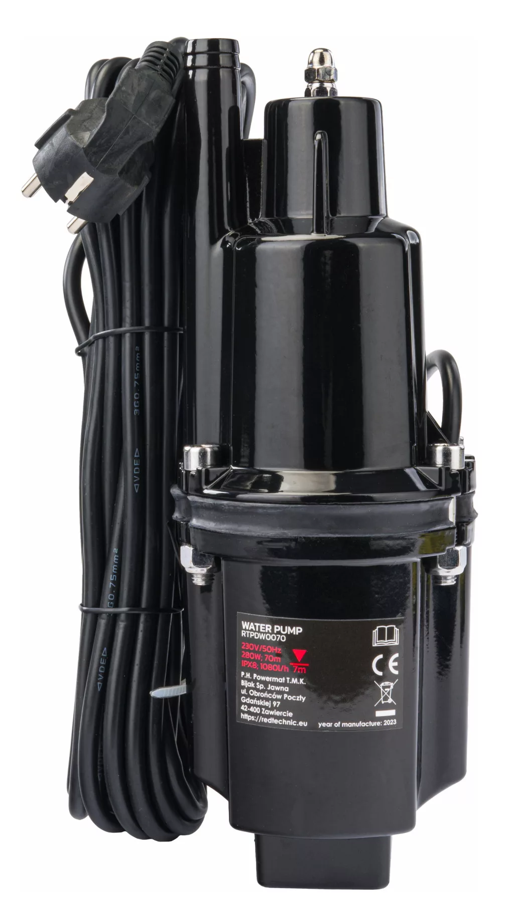 Red Technic Membrános Búvárszivattyú – 280W, 1080 l/h, 70m emelőmagasság – Felső szívású (RTPDW0070)