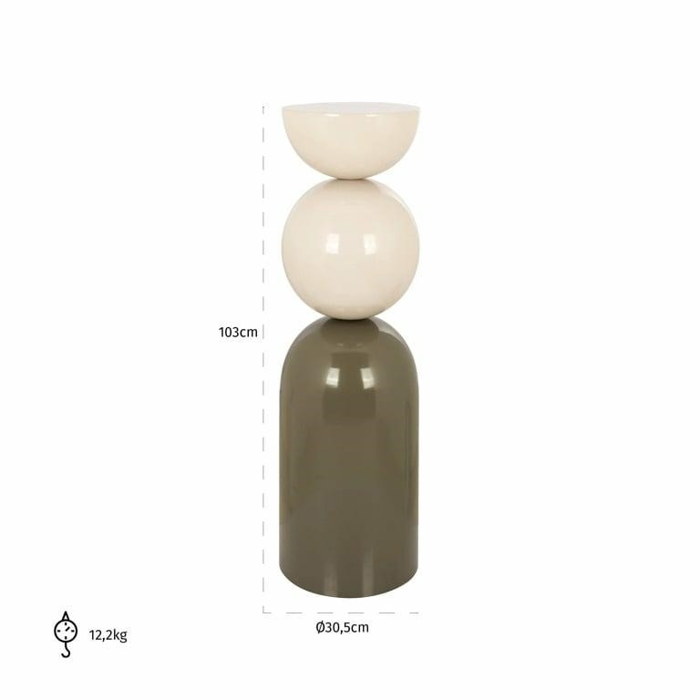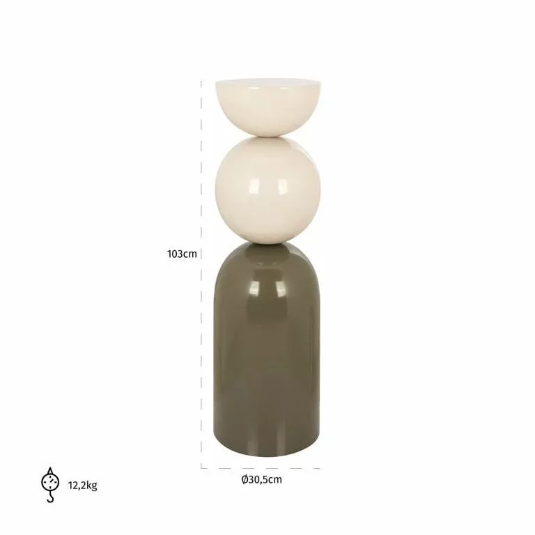 A Richmond Bisou díszoszlop egy igazi művészi alkotás, amely ötvözi a modern design elemeit a praktikus funkcionalitással. A fehér és sötétzöld színkombináció, valamint a geometrikus formák játéka egyedi karaktert kölcsönöz a darabnak. Az oszlop tetején található gömb és félgömb formák harmonikus átmenetet képeznek.