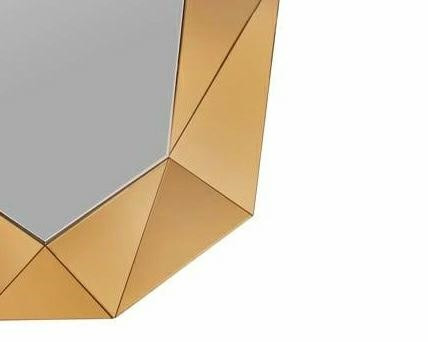 Elegáns, gyémántcsiszolású hatású kerettel rendelkező fali tükör, amely modern geometrikus designjával és arany színével luxus hangulatot teremt otthonában.