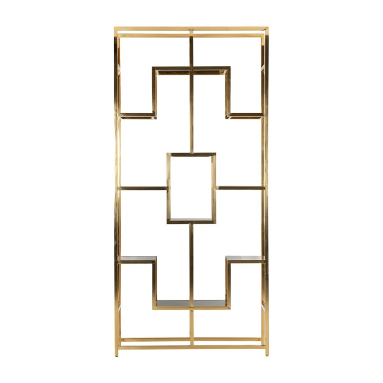 A Richmond Magnus fali vitrinszekrény a modern luxus megtestesítője. A geometrikus vonalvezetésű, arany színű rozsdamentes acél váz és az üveg polcok harmonikus kombinációja egyedi megjelenést kölcsönöz a bútornak. A 13 beépített üvegpolc bőséges helyet biztosít dekorációs tárgyak és könyvek tárolására.