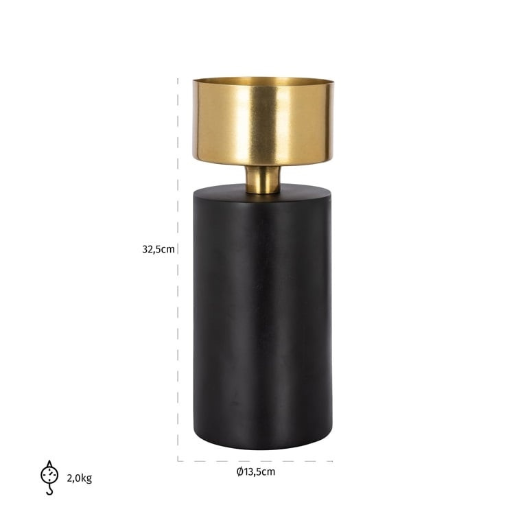 A Richmond Tess S gyertyatartó a modern elegancia megtestesítője. A hengeres forma és a kontrasztos fekete-arany színvilág harmonikus egységet alkot, míg a minőségi fa és fém kombinációja tartósságot és luxus megjelenést biztosít.