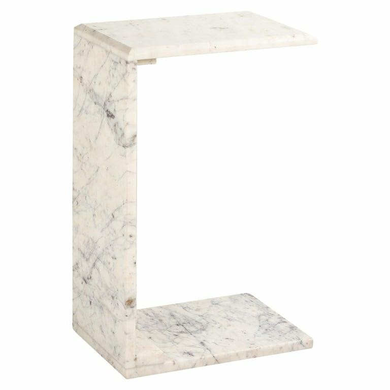 Elegáns, fehér márványból készült kisasztal minimalista dizájnnal, amely tökéletes kiegészítője a modern lakberendezésnek.