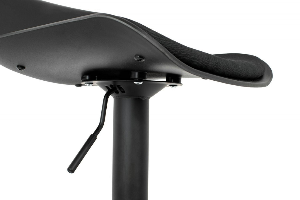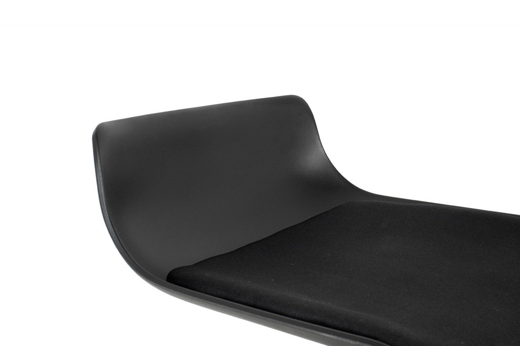 A párnával ellátott ülés műanyagból, az állvány pedig fémből készült, fekete színben.