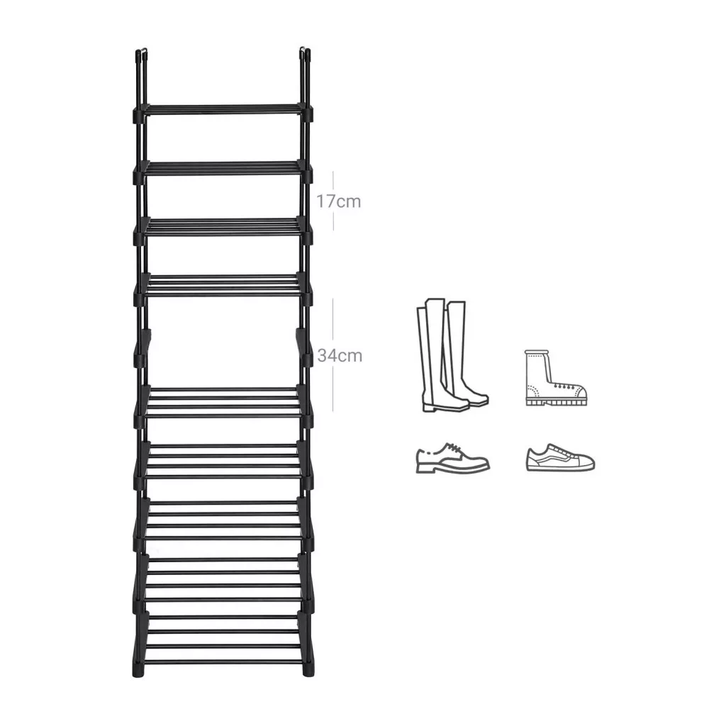 SONGMICS 10-Szintes Fém Cipőtároló Állvány Fekete