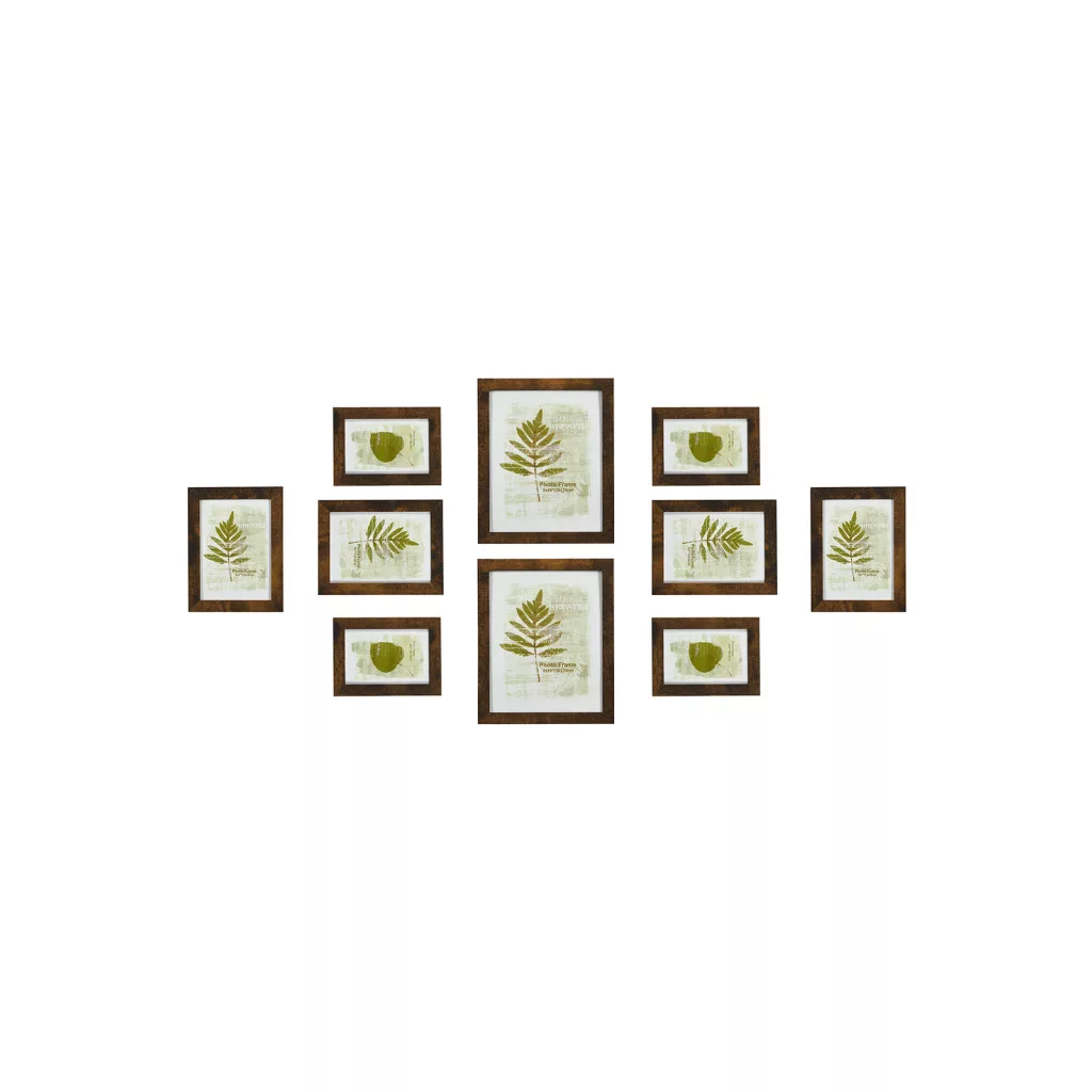 Stílusos 10 darabos képkeret készlet három különböző méretben, rusztikus barna kivitelben, amely tökéletes megoldást nyújt kedvenc emlékei falra helyezéséhez.