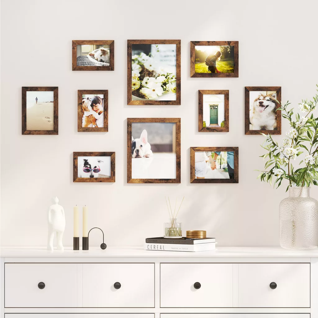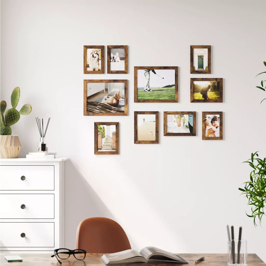 SONGMICS 10 darabos Képkeret Szett Rusztikus Barna MDF Kerettel