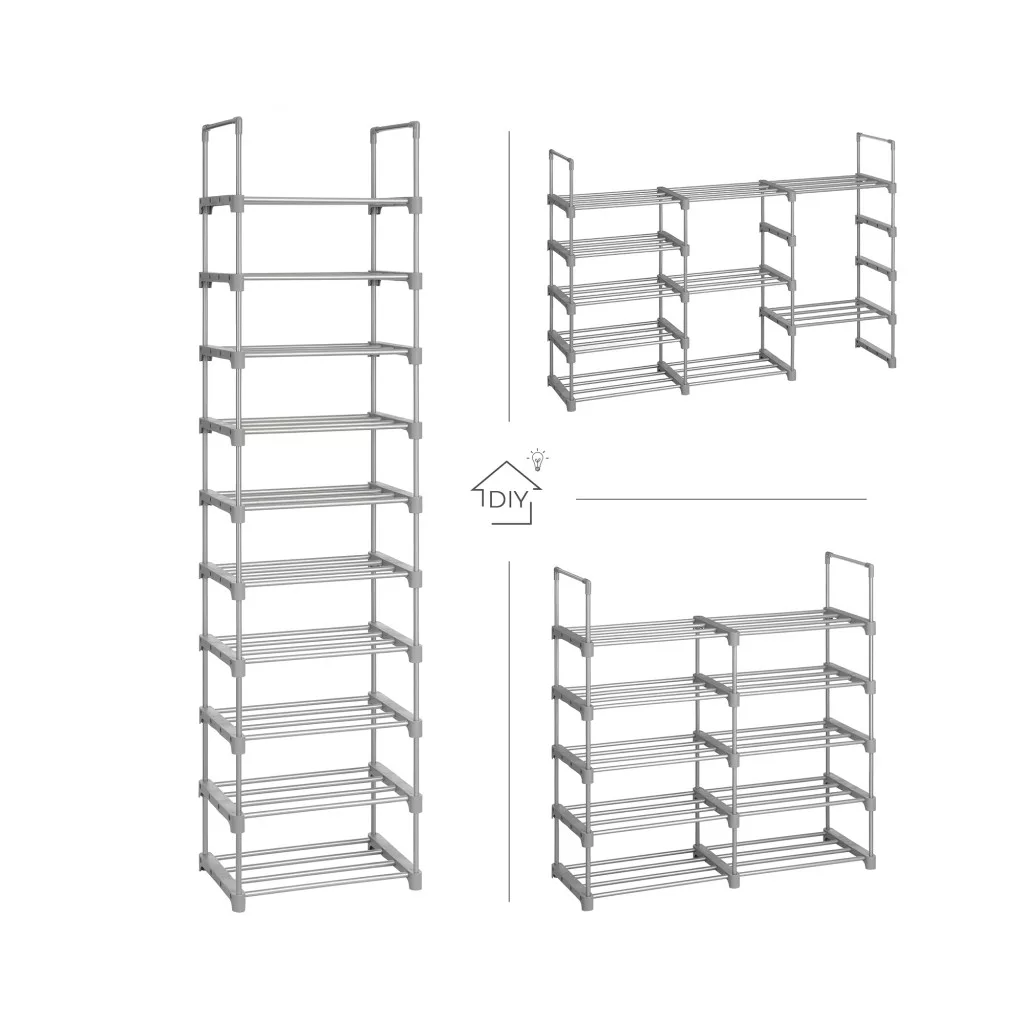 SONGMICS 10 szintes cipőtartó állvány fém szürke helytakarékos