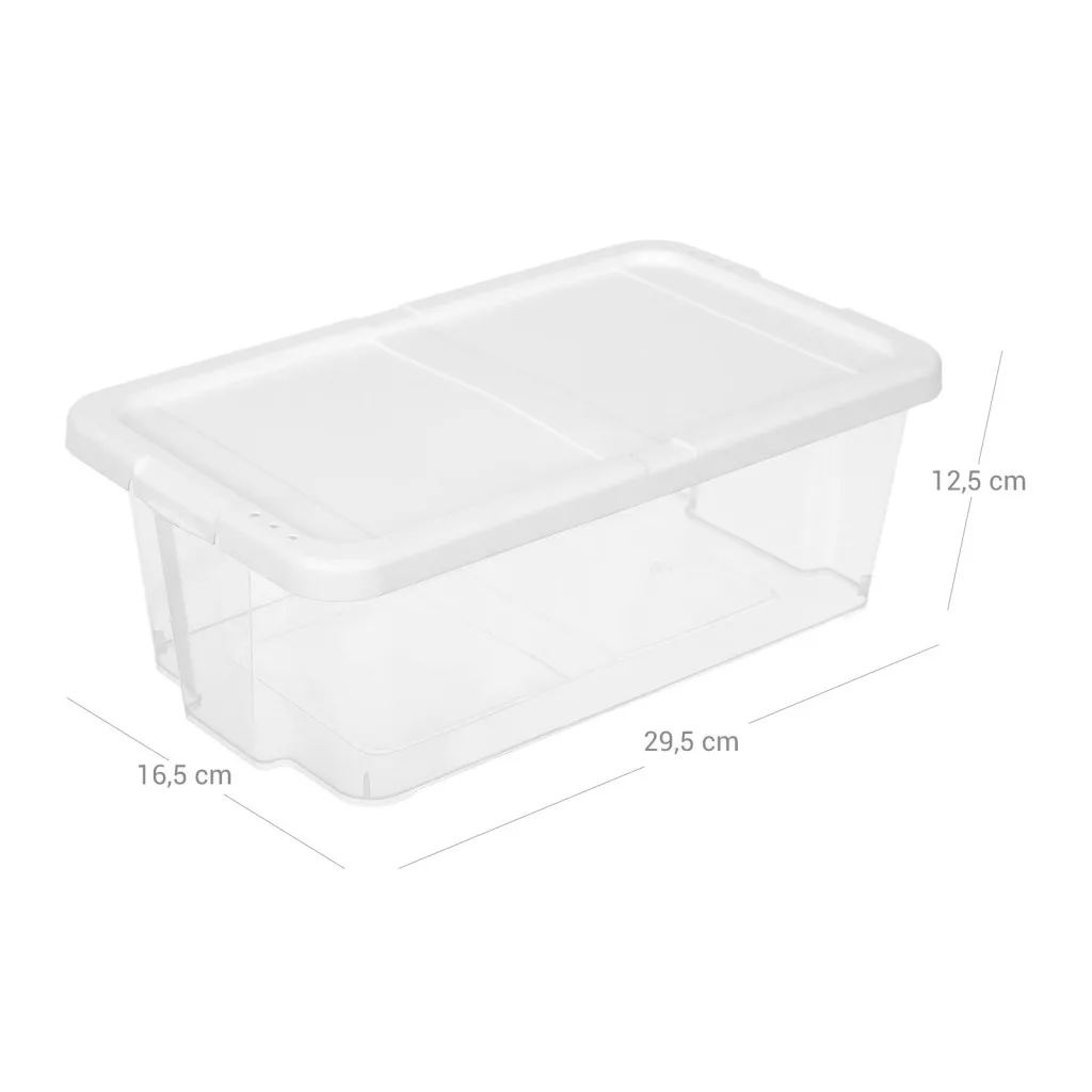Praktikus, átlátszó cipőtároló doboz szett fehér fedéllel, amely tökéletes megoldást nyújt cipői rendszerezett tárolására és védelmére a portól.