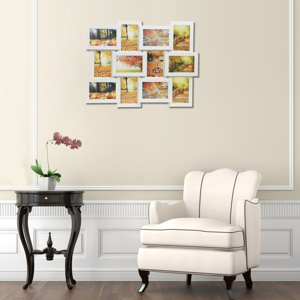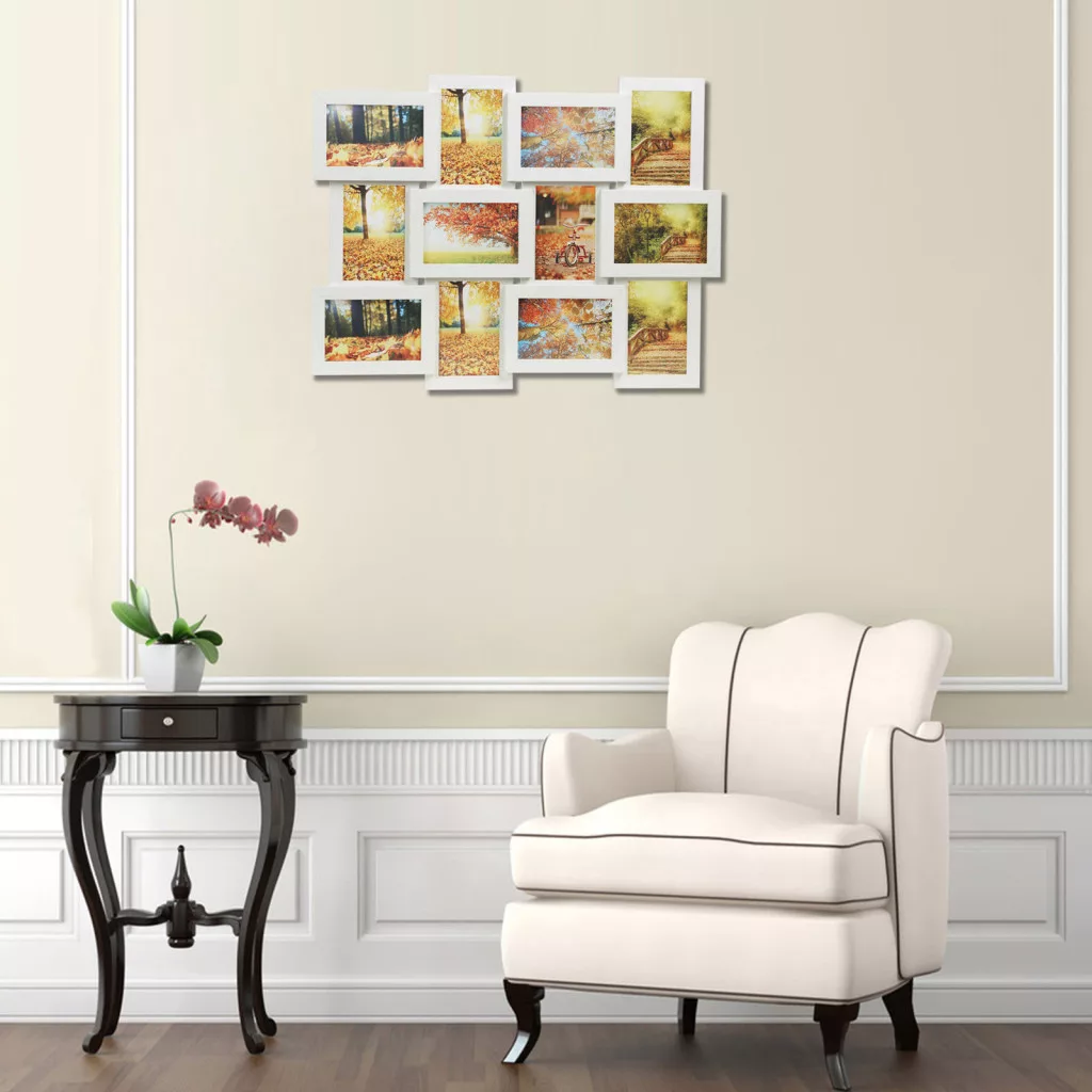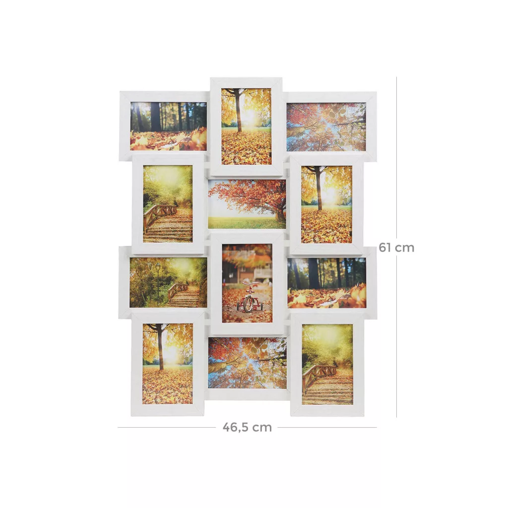 SONGMICS 12 képes Fehér Fa Mintázatú Fali Képkeret Kollázs