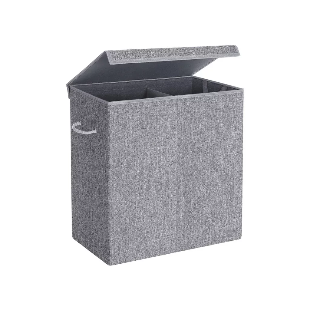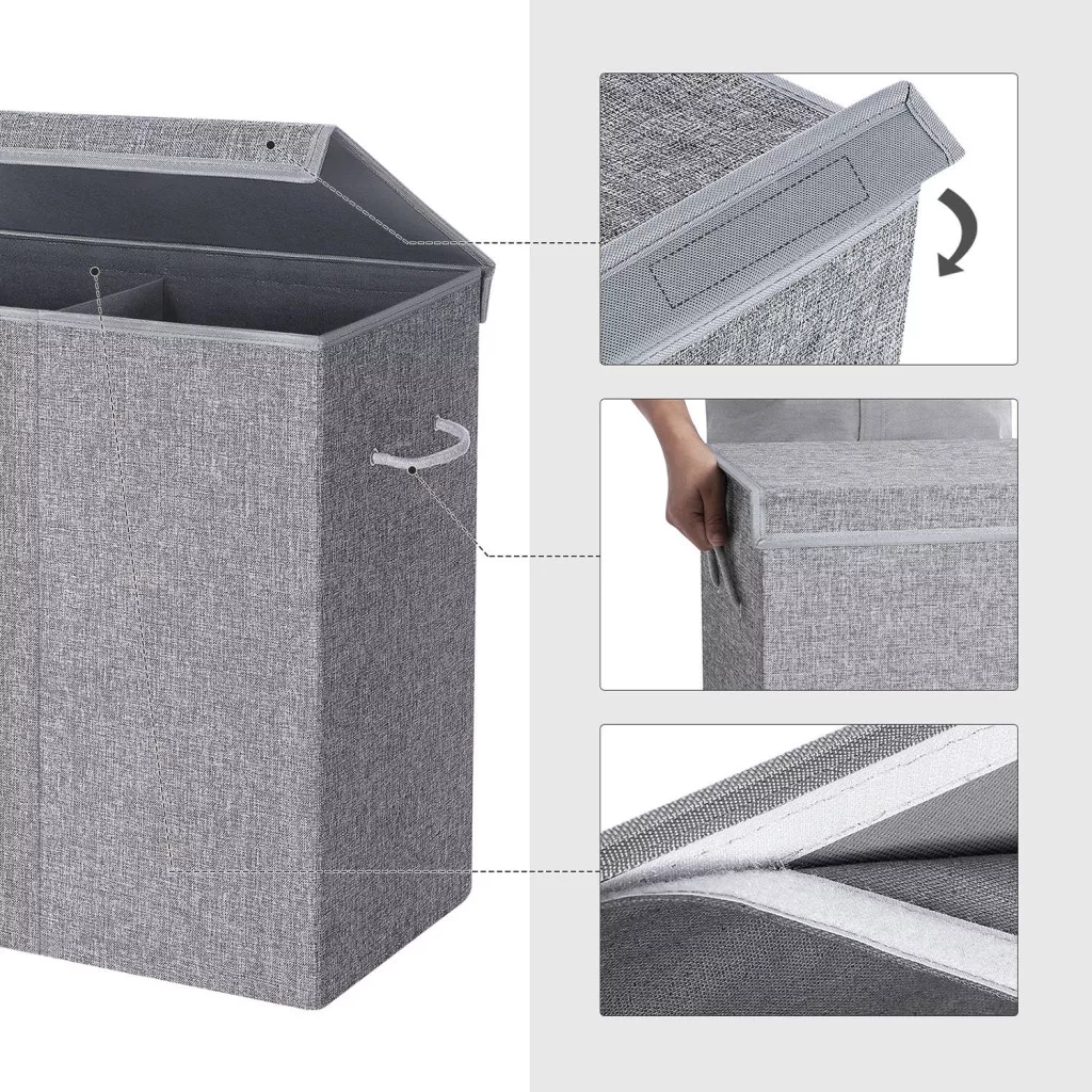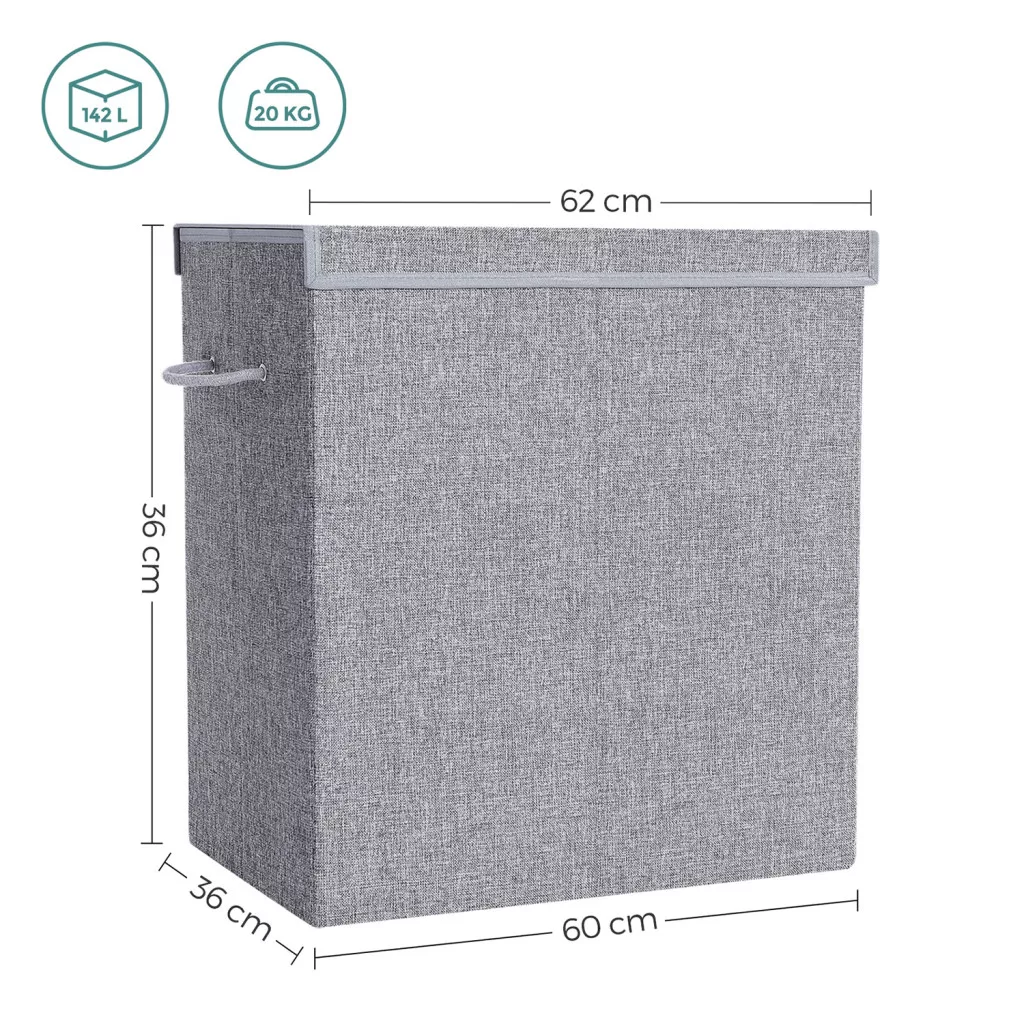 SONGMICS 142L Osztott Szennyestartó Kosár Szürke Vászon Fedéllel