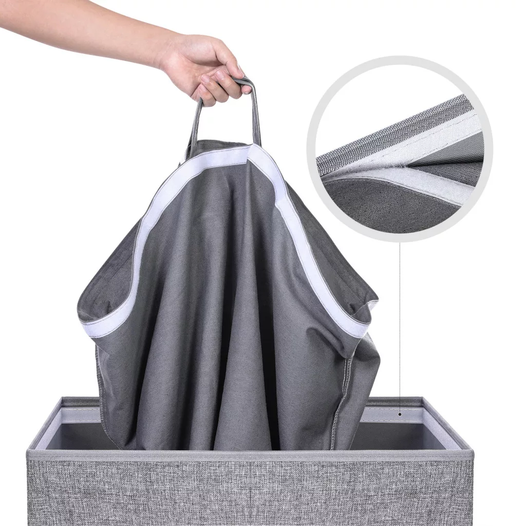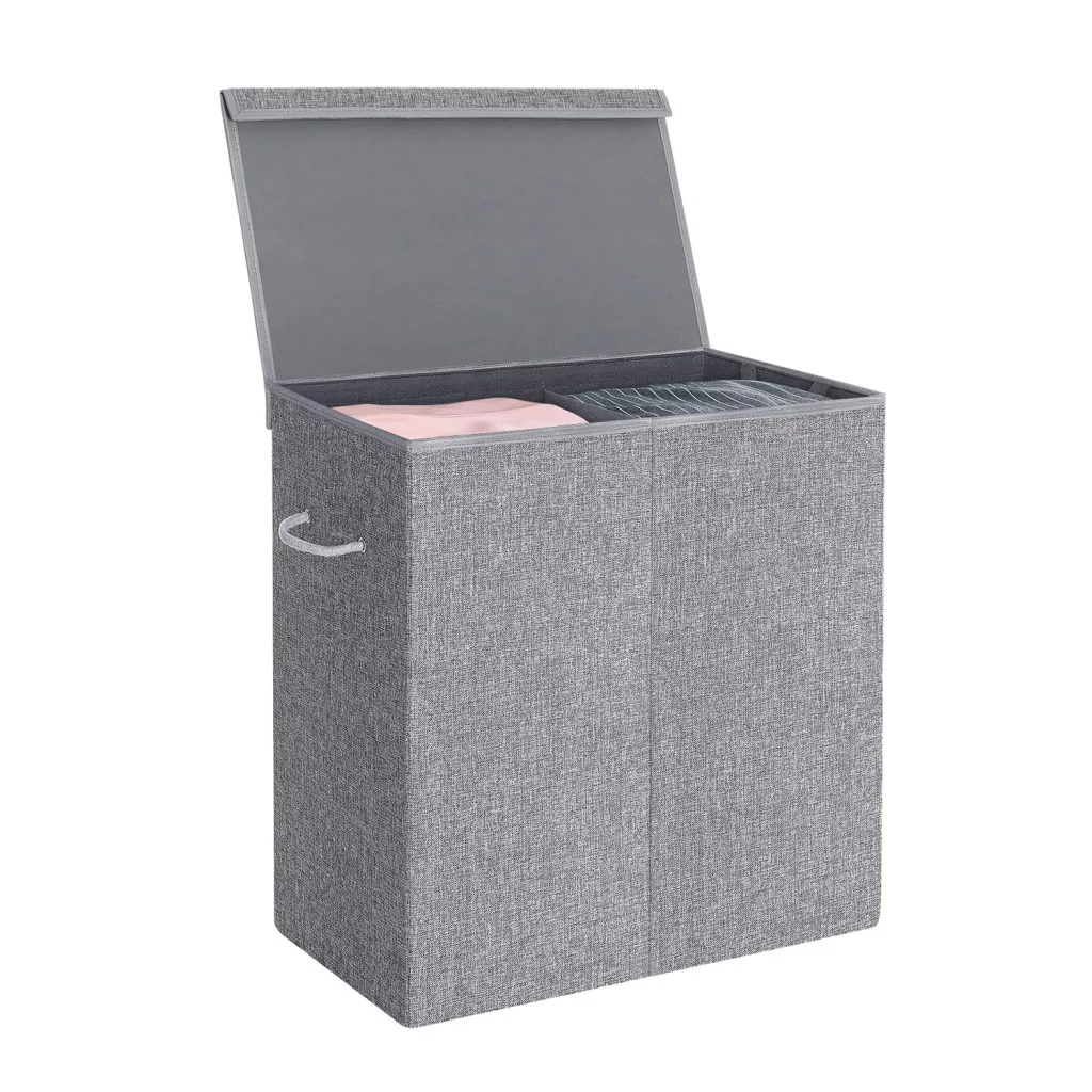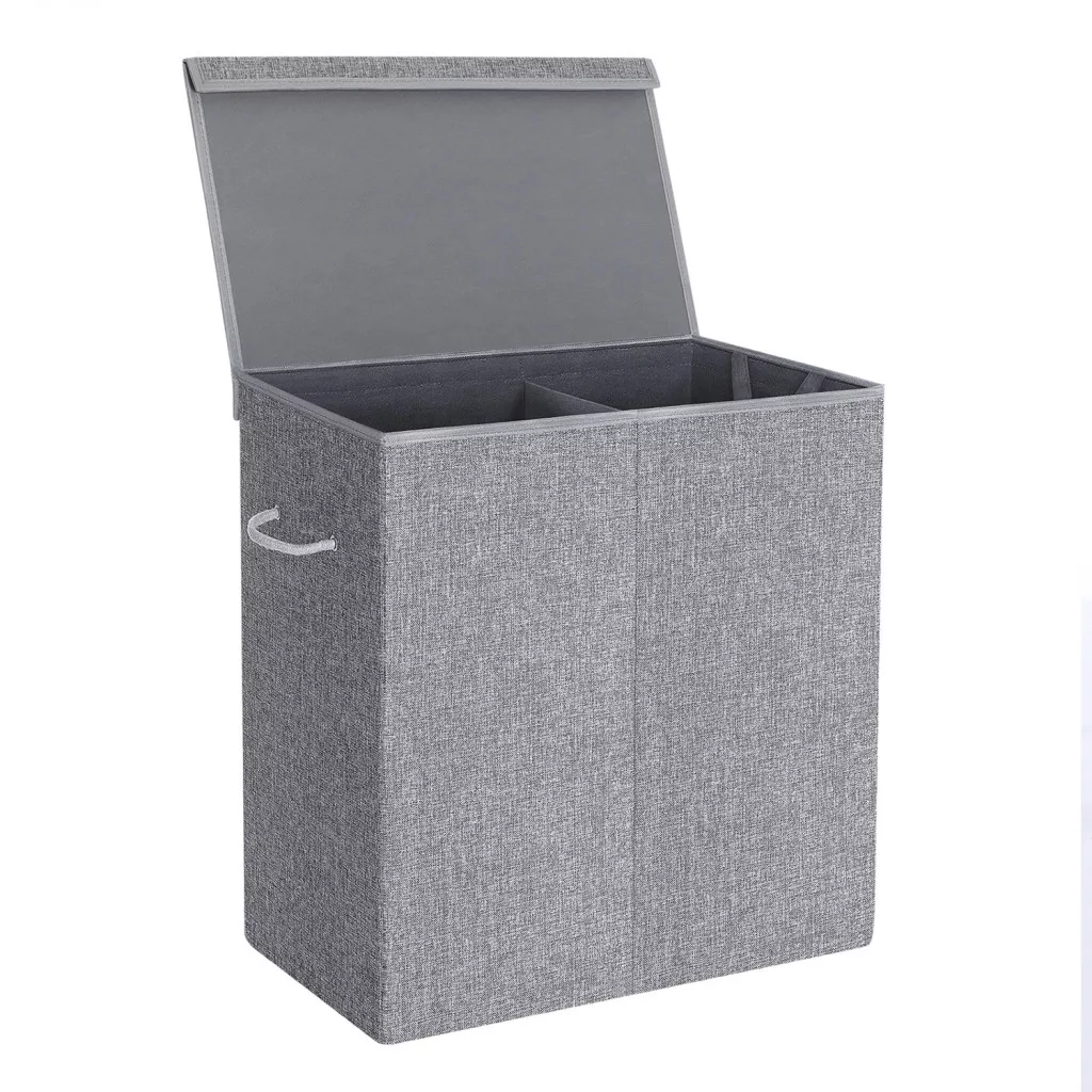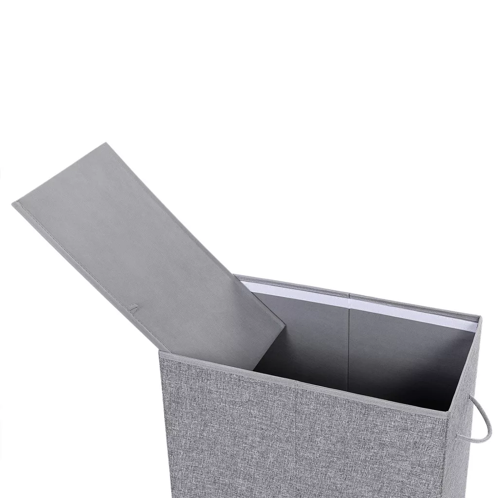 SONGMICS 142L Osztott Szennyestartó Kosár Szürke Vászon Fedéllel