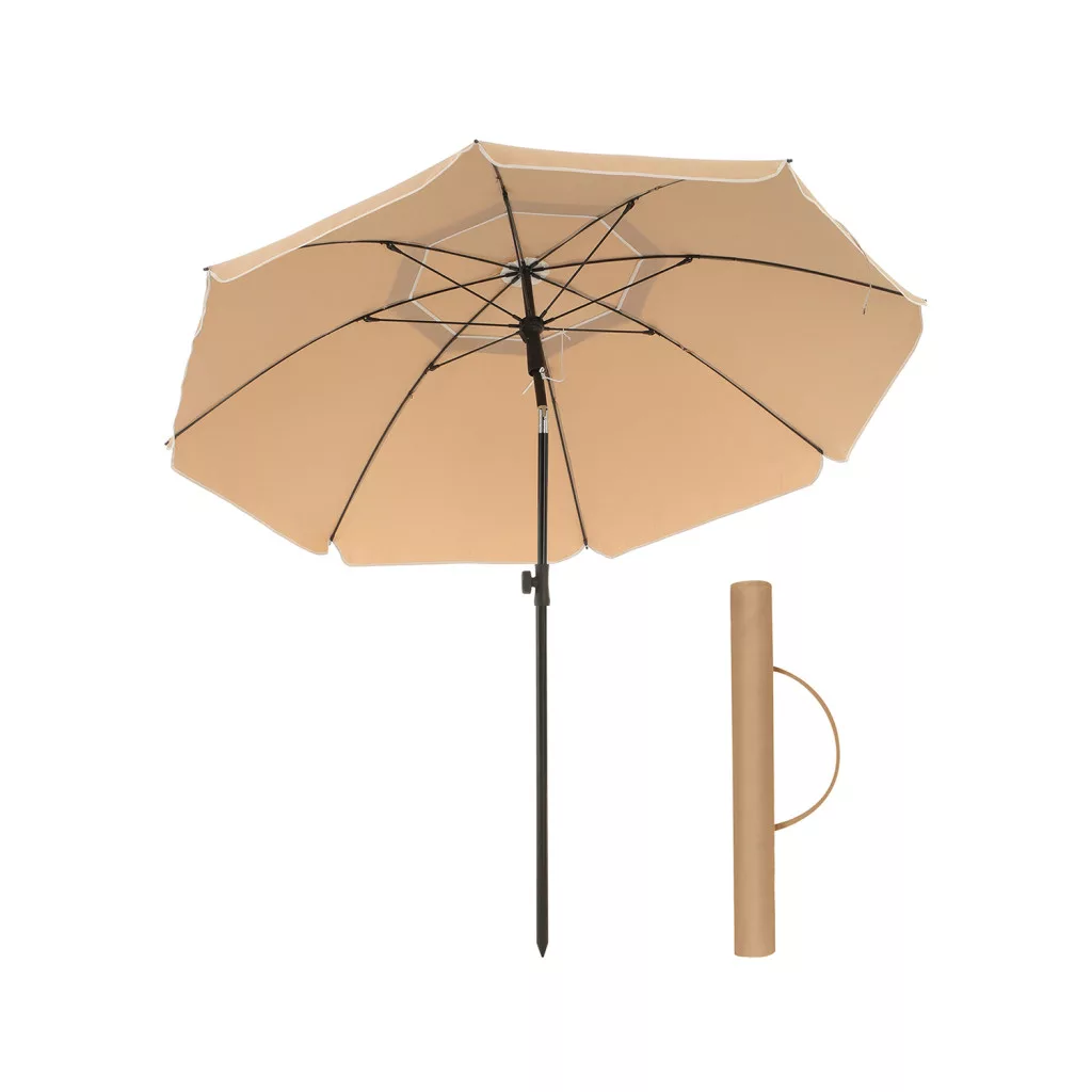 Az üvegszálas bordák és a szellőzőnyílás biztosítják a napernyő stabilitását szeles időben is. A kompakt, hordozható kialakítás és a mellékelt hordtáska pedig gondoskodik arról, hogy bárhová magával vihesse ezt a praktikus árnyékolót.