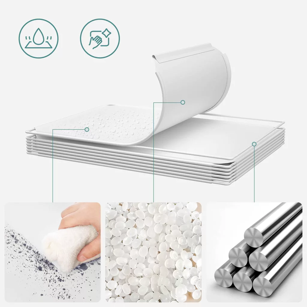 • Biztonságos és stabil konstrukció: A megerősített műanyag panelek, masszív fém váz és biztonsági rögzítés garantálják a stabilitást, minden rekesz 10 kg terhelést bír el