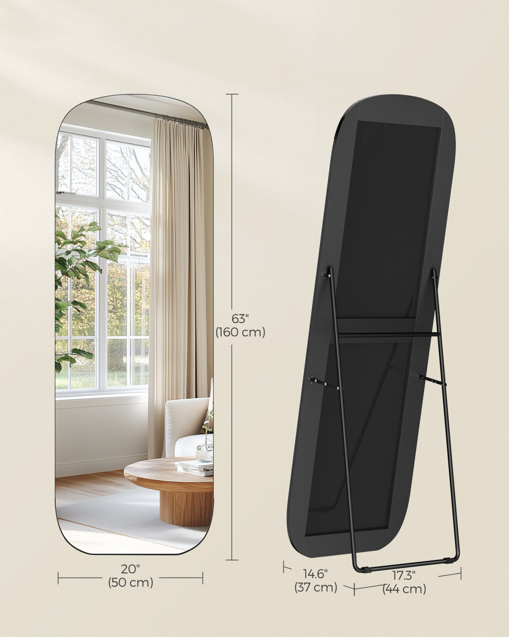 SONGMICS 160 x 50 cm álló tükör alumínium kerettel edzett üveg tintafekete