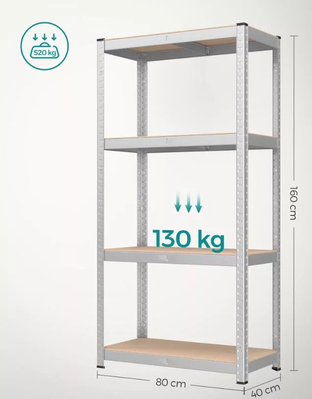 • Kiváló teherbírás: Minden polc akár 130 kg terhet is elbír, ideális nehéz szerszámok, berendezések és felszerelések tárolására