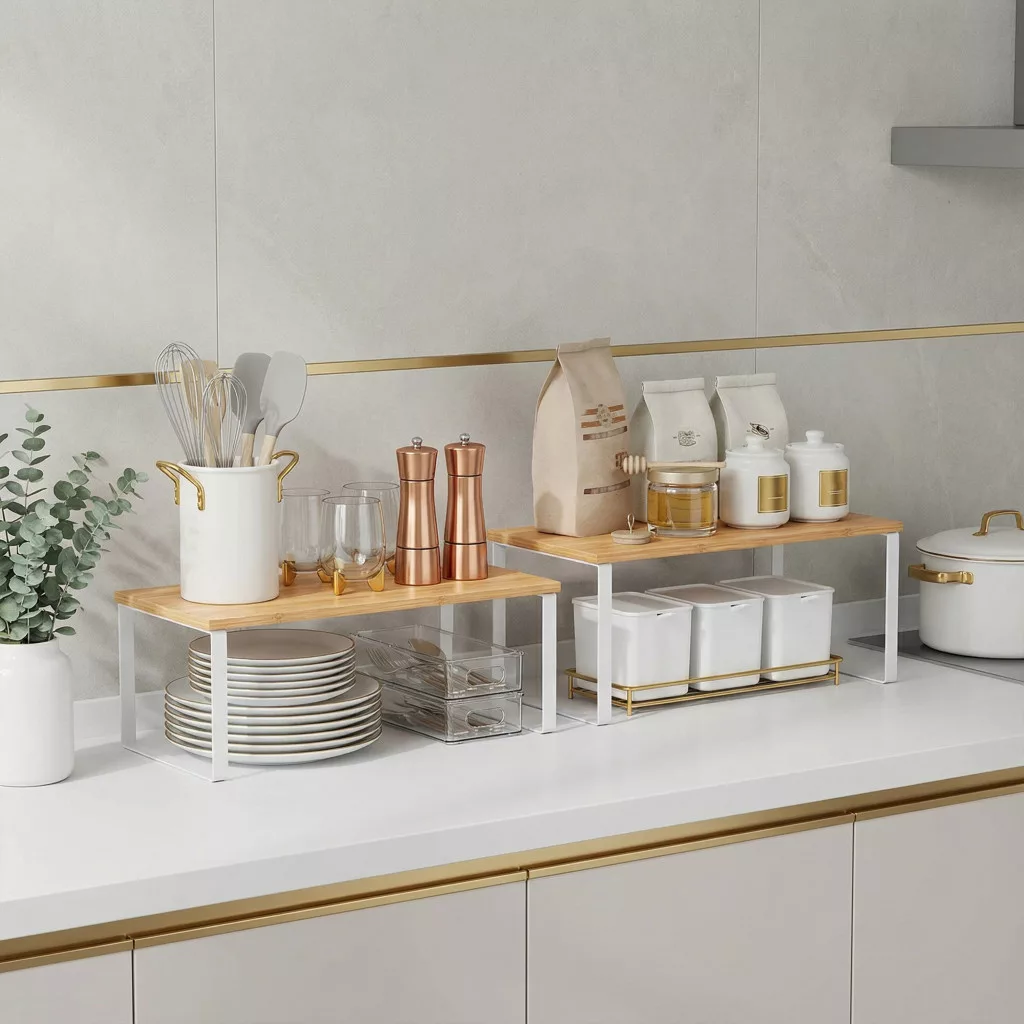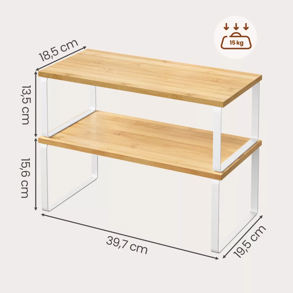 SONGMICS 2 darabos állítható konyhai polc szett fém és műfa anyagból felhőfehér és természetes bézs színben
