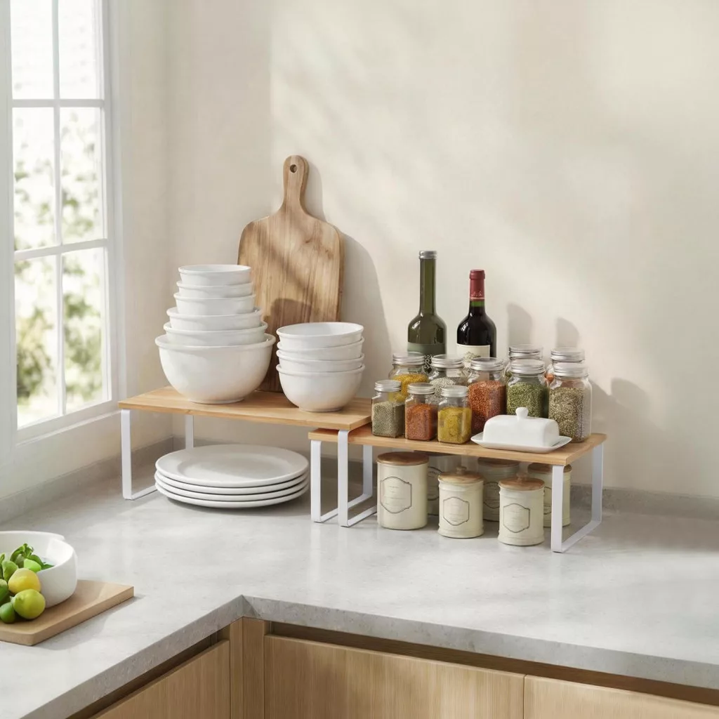 Ez a sokoldalú tárolási megoldás nemcsak fűszerüvegek, tárolóedények és konzervek rendszerezésére alkalmas, hanem könyvek, evőeszközök és egyéb konyhai kellékek számára is ideális. A masszív konstrukció polconként 15 kg teherbírást garantál, így nyugodtan tárolhat rajta nehezebb tárgyakat is. Az egyszerű szerkezet és a mellékelt útmutató révén a polcok percek alatt összeszerelhetők, és azonnal használatba vehetők. A polcok használata nem korlátozódik csak a konyhára - kiválóan működnek az étkezőben asztali dekorációk kiemelésére, a hálószobában íróasztal rendszerezőként, vagy akár a fürdőszobában is.