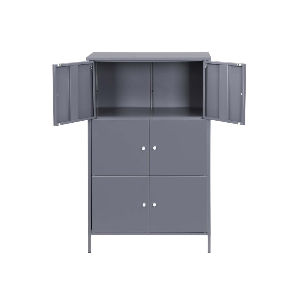 Praktikus, 3 polcos fém tárolószekrény 6 ajtóval, amely tökéletes megoldást nyújt irodai dokumentumok, eszközök rendszerezett tárolására. Strapabíró kialakítása és elegáns szürke színe minden környezetbe illeszkedik.
