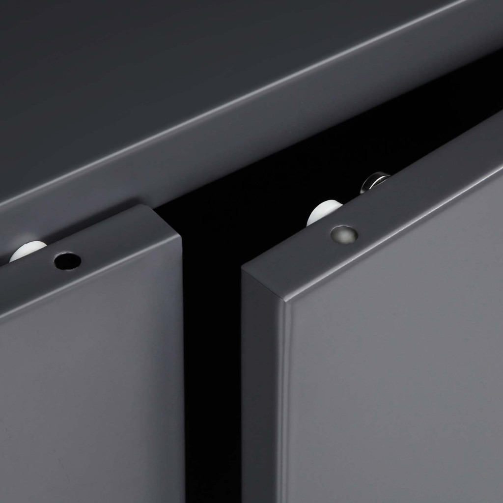Ez a modern vonalvezetésű fém tárolószekrény praktikus megoldást kínál a rendezett környezet kialakításához. A három polc mindegyike dupla ajtóval rendelkezik, amelyek 90 foknál nagyobb szögben nyithatók, így könnyű hozzáférést biztosítanak a tárolt dolgokhoz. A mágneses záródás és gumírozott ütközők gondoskodnak a halk és biztonságos használatról.