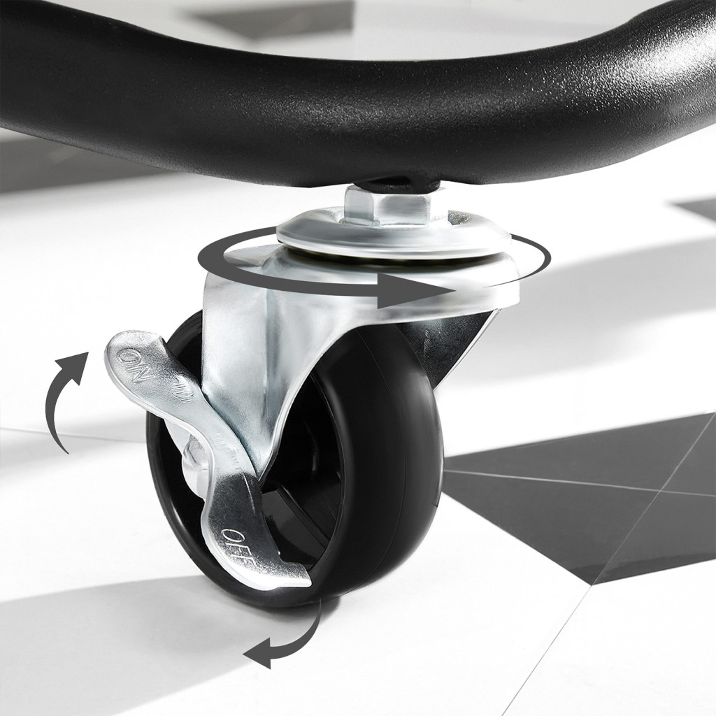 A kocsi praktikus fogantyúval és két kis méretű kiegészítő tárolóval rendelkezik, amelyek további rendszerezési lehetőséget kínálnak. A négy kerék közül kettő fékezhető, így stabilan egy helyben tartható, amikor szükséges.